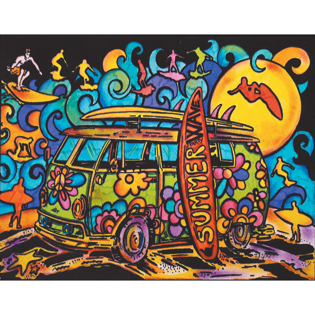 Samtausmalbild BULLI MIT SUFRBRETT 47 x 35 cm